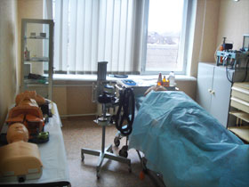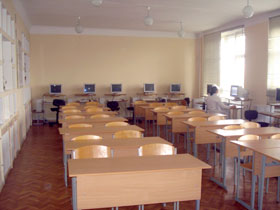 на другому поверсі одного із флігелів лікарні на Соборній площі, займала чотири кімнати під класи, одну – під учительську (в ній розміщувались шафи з шкільними посібниками, бібліотекою, фізичним кабінетом).